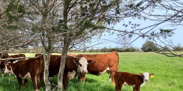 Hereford/Angus cows and Dorper/Katahdin sheep.